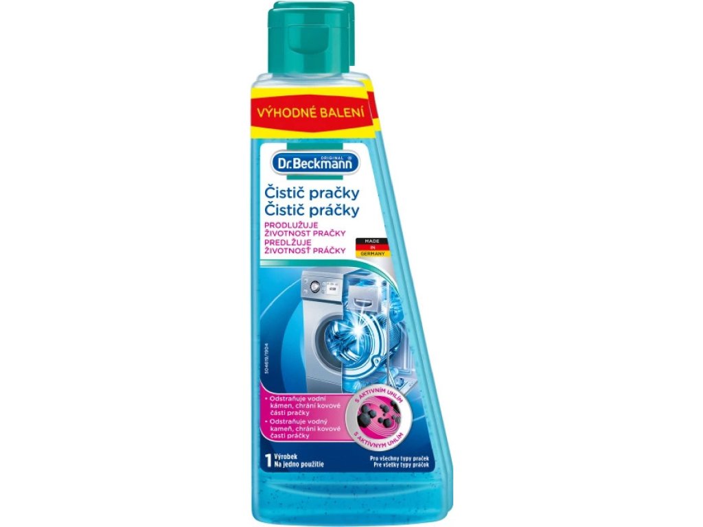 - odstraňuje usazeniny po praní, vodní kámen a další dlouhodobé nečistoty z topných těles, hadic, bubnu a všech vnitřní částí pračky